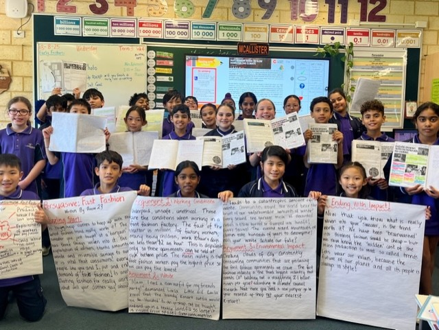 The Year 5 students in Room 23 have had a brilliant start to Semester 2! We started the term with an exciting persuasive writing unit all about fast fashion. All the Year 5s met together in the undercover area to learn what fast fashion is and its hidden secrets. Together, we explored what it takes to make ‘trendy’ clothes and started right at the beginning of the supply chain.