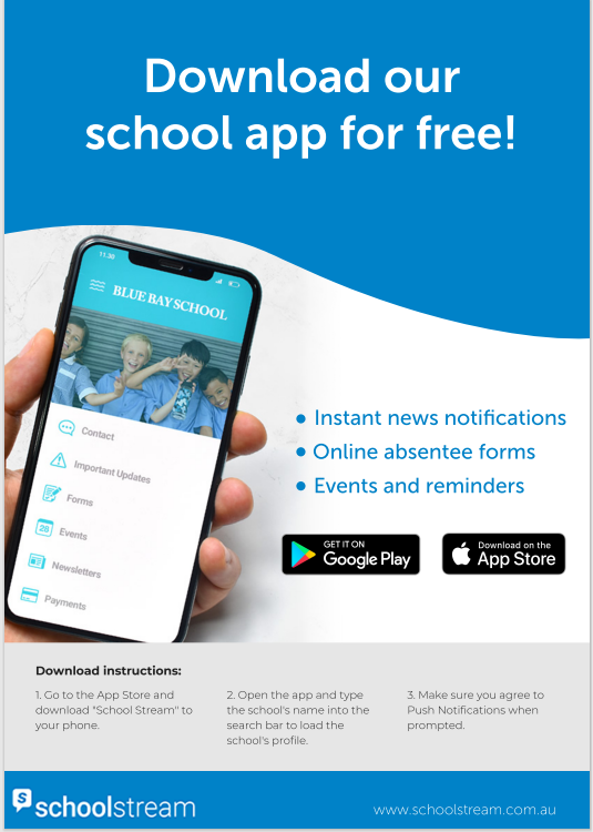 Our school App is called School Stream and you can download it for free. It is an essential resource for parents to have as we use the app for all communication. It is also advised to keep your notifications setting turned on as, at times, it may be the only way the school can communicate.